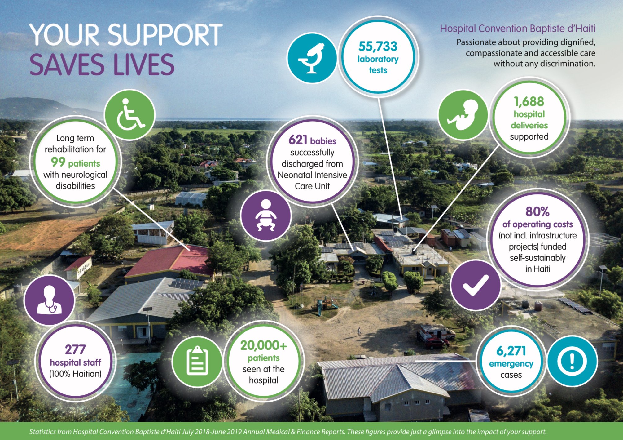 In 2007, HHA co-founded Hopital Convention Baptiste d’Haiti (HCBH), a general hospital in northern Haiti which is now one of the region's leading facilities. HCBH is a 100+ bed hospital that employs over 300 Haitian staff and supports over 30,000 patients a year.